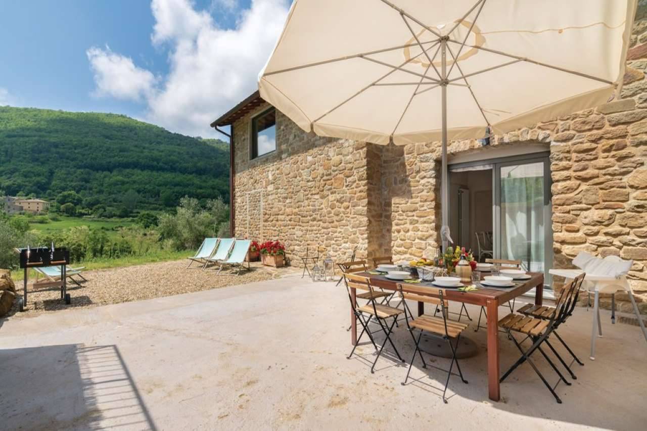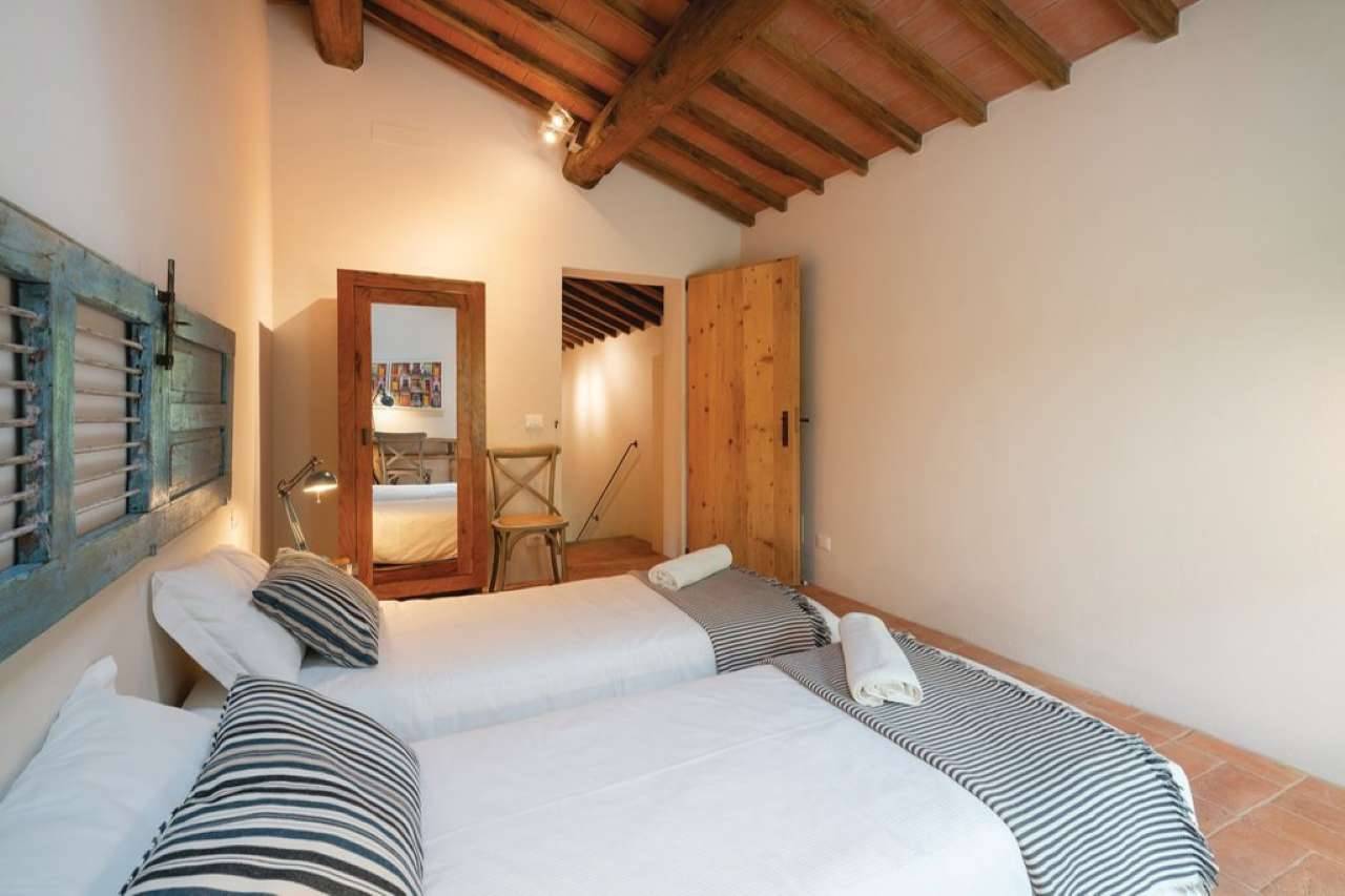 Circondato dal verde, in una delle zone più conosciute del Chianti(zona del "Gallo Nero"),ubicato in complesso di sole 4 unità con piscina condominiale,rustico/fienile disposto su 2 livelli di 140mq di recente edificazione,composto da ingresso su ampia e luminosa zona giorno con camino, cucina abitabile con pranzo,bagno. Al livello superiore,(servito da un 2°ingresso) camera padronale con bagno en-suite, 2 camere doppie e 2° servizio alla francese. L'immobile è circondato da 1.000 mq di giardino esclusivo con olivi e alberi da frutto.Completano la proprietà 4 posti auto in area condominiale. L'immobile di indubbio fascino, è stato edificato nel 2019 ed è inserito in un contesto signorile con piscina condominiale, circondata dalle verdi colline del Chianti. Grazie alla sua posizione ed ubicazione, è ideale sia per la famiglia che vuole concedersi una parentesi verde a soli 30 minuti da Firenze o per locazioni di tipo turistico (l'immobile attualmente è già inserito nel circuito con ottima rendita).Riscaldamento autonomo.Predisposizione allarme,pannelli solari.Aria condizionata. Possibilità di edificazione di ulteriori 33mq che permetterebbero l'ampliamento della cucina o l'utilizzo come ampia autorimessa. Eu. 720.000