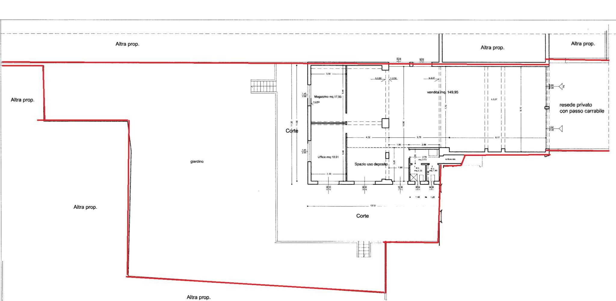 L' immobile risulta composto da un grande open-space di 150 mq uso negozio con 2 servizi, entrambi finestrati oltre magazzino e ufficio. PARCHEGGIO PRIVATO CON PASSO CARRABILE PER UTENTI E CLIENTELA. Oltre corte e giardino esclusivo. LIBERO A FINE DICEMBRE 2025. Eu. 2.500