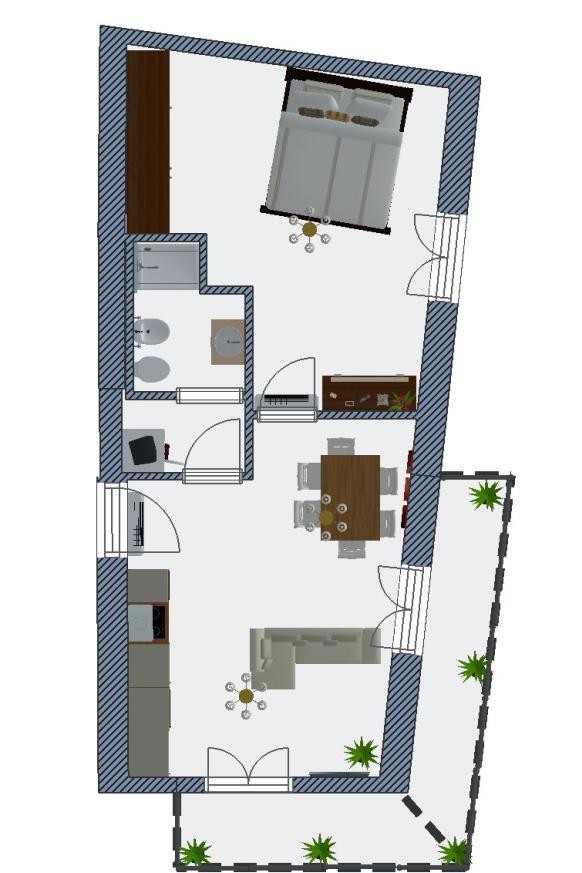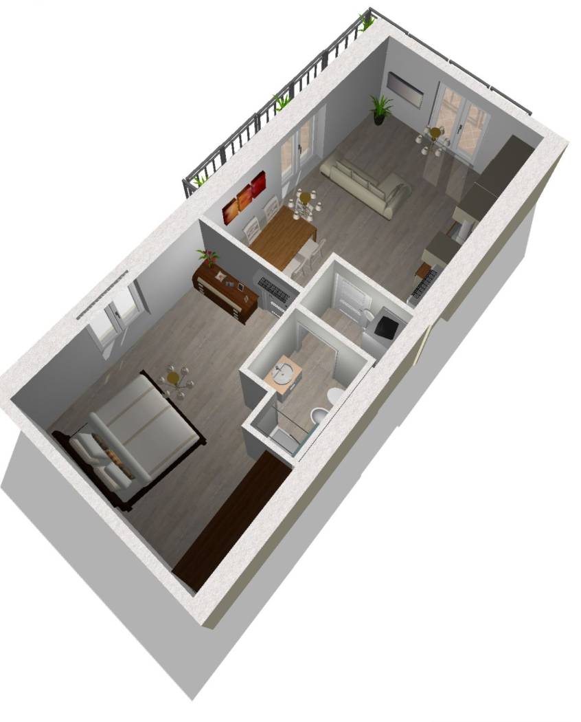 Delizioso bilocale con balconi ristrutturato.